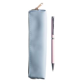 | Composição | "Caneta esferográfica: Metal, resina termoplástica, polipropileno, tinta à base de água, pigmentos e solventes Estojo: Couro sintético, poliéster e metal" |
