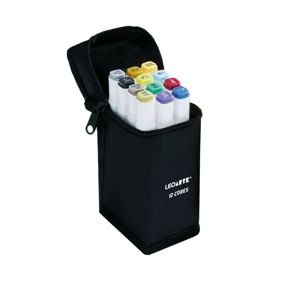 Marcador Dual Tip Profissional e Artístico 12 Cores LeoArte