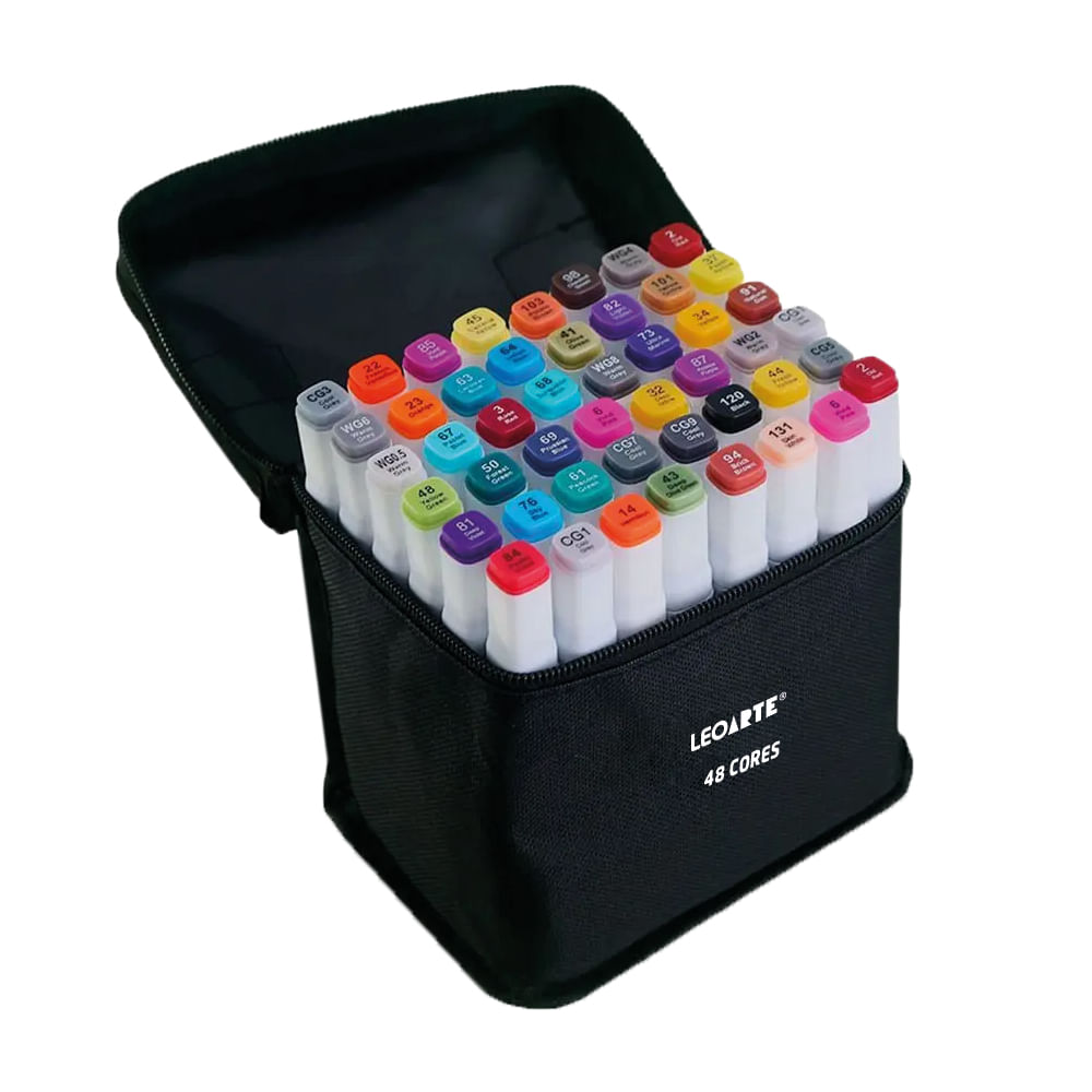 Marcador Dual Tip Profissional e Artístico 48 cores LeoArte