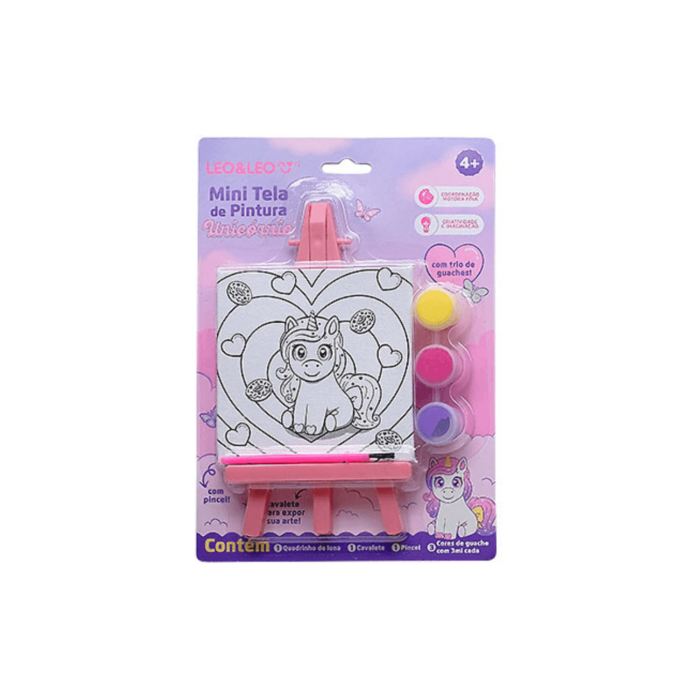 MINI TELA DE PINTURA COM CAVALETE UNICORNIO CORAçãO LEO&LEO